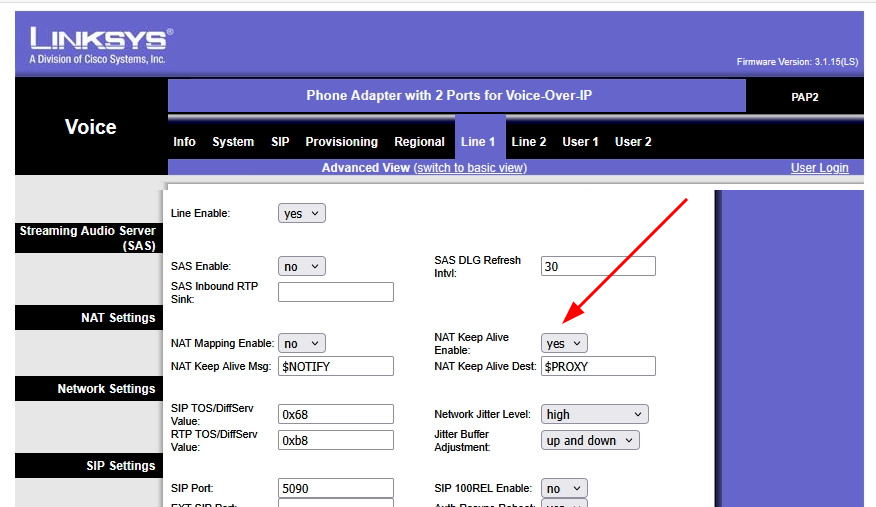 Doporučujeme mít na zařízení Linksys/Cisco zapnutou možnost keep alive.